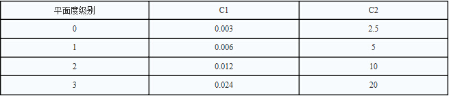 C1、C2為大理石平板平面度級別有關(guān)的系數(shù),見下表: